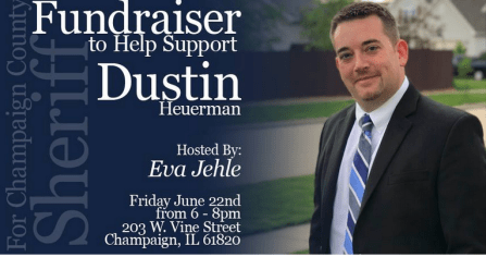 Keep your Summer going with happy hour drinks and heavy hors-d’oeuvres at Eva Jehle’s home in support of Dustin Heuerman for Champaign County Sheriff, the first democratic candidate for Sheriff in Champaign County in 20 years! Stop by for a bit, or stay for a while!