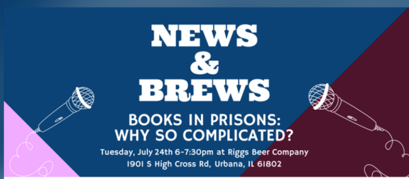 sroom, Illinois Public Media, Jane Addams Bookstore and Riggs Beer Company invite you for a discussion driven by data, research, and stories around the impact of Books in Prisons. The date is Tuesday, July 24, 6:00 – 7:30 pm. at the Riggs Beer Company, 1901 S High Cross Rd, Urbana.