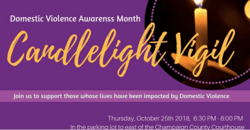 Join Courage Connection for a Candlelight Vigil to honor and recognize victims and survivors of Domestic Violence. There will be guest speakers along with an open mic platform for sharing. The Vigil is Thursday, October 25, 6:30 pm – 8:00 pm at the Champaign County Courthouse, 101 E. Main in Urbana. Here’s the Facebook event.This event is part of Domestic Violence Awareness Month. See our earlier post for the big picture on this series.