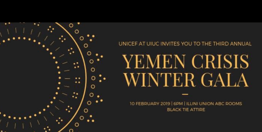 As of November 2018, over 11 million children require humanitarian assistance in Yemen. That is 80 percent of the country’s children. Many face the threat of developing acute malnourishment. All have lost a lot. As violence continues in the Yemeni Civil War, their numbers and their needs grow. The risk of this humanitarian crisis turning into a human catastrophe is all too real. UNICEF is on the ground working to help meet the affected children’s urgent needs. To do our part, UNICEF at UIUC would like to invite you to the third annual Winter Gala to raise awareness and funds for the children in need.Come dressed in your finest black-tie outfits in order to fundraise for an amazing cause. The date is Sunday, February 10, 6:00 pm – 8:00 pm at the Illini Union, 1401 W Green St, Urbana.
