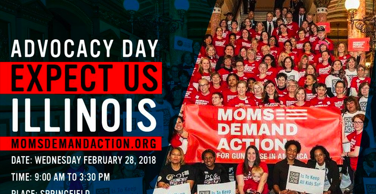 Join Illinois Moms Demand Action volunteers from around the state at the Capitol in Springfield to make sure our representatives know we want common sense gun laws to keep our families and communities safe! It’s on for Wednesday, February 28, 2018, 9:00 am – 3:30 pm at the Illinois State Capitol, 201 S 2nd St., Springfield, IL. Please RSVP here: http://act.everytown.org/event/moms-demand-action-event/7944/signup/